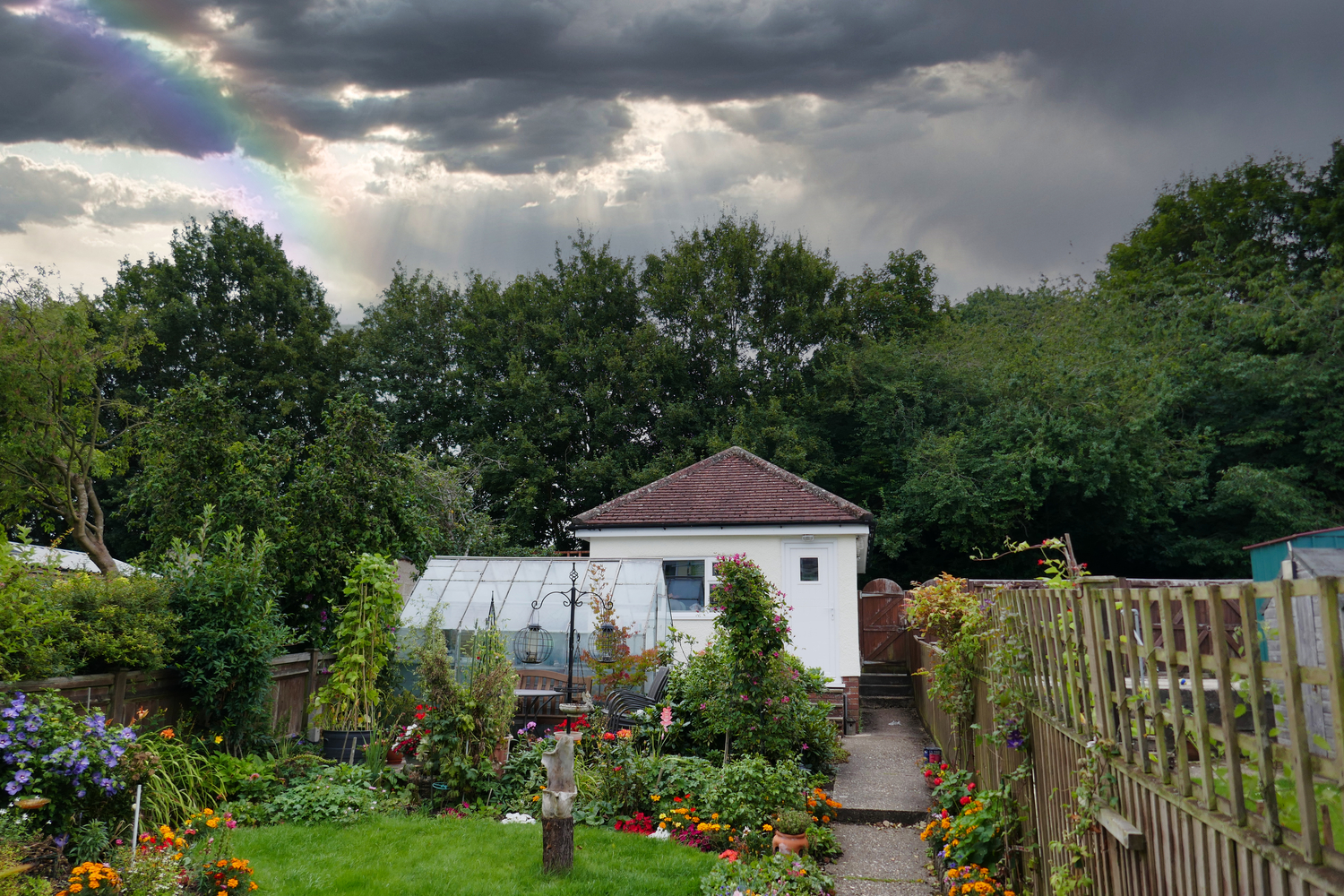 We have carried out a complete redecoration to this exterior. We always empty guttering and clean all plastic facia/soffits before any paint work starts. Dulux weather-shield applied to the render, which is a breathable masonry paint and Sadolin extra wood-stain on the windows and doors. This house will now be protected from the British winters and look great for years to come.